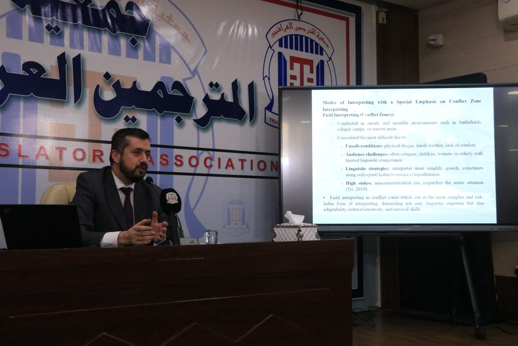 نظّمت جمعية المترجمين العراقيين يوم السبت 04-10-2025 ندوة علمية بعنوان : (المترجمون الفوريون في بؤر النزاعات: دراسة استقصائية )