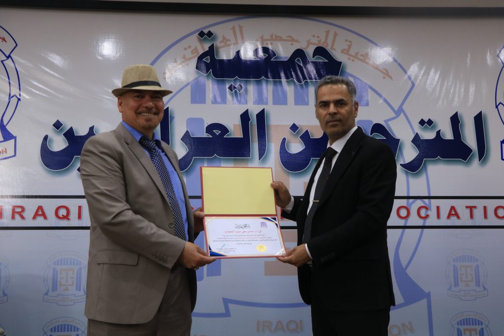 وفي ختام الندوة قدم الاستاذ كاظم عبد الحسن رئيس الجمعية كتاب شكر وتقدير الى الدكتور ناصر تثميناً لجهوده في هذه الندوة .